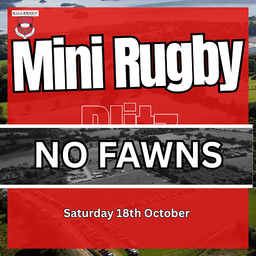 Please note there will be 𝗻𝗼 𝘁𝗿𝗮𝗶𝗻𝗶𝗻𝗴 for our Mini Rugby Fawns this Saturday, October 18th, as many of our coaches and older minis will be taking part in the blitz in Iveragh.