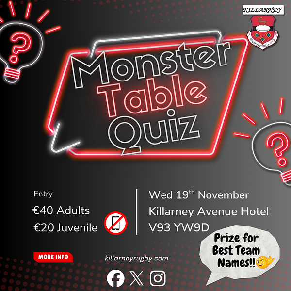 Weโre excited to announce our Monster Table Quiz will take place on Wednesday 19th November โ a fantastic night of fun, brain-teasing questions, and spot prizes galore! This promises to be a great social event for the whole club and community.