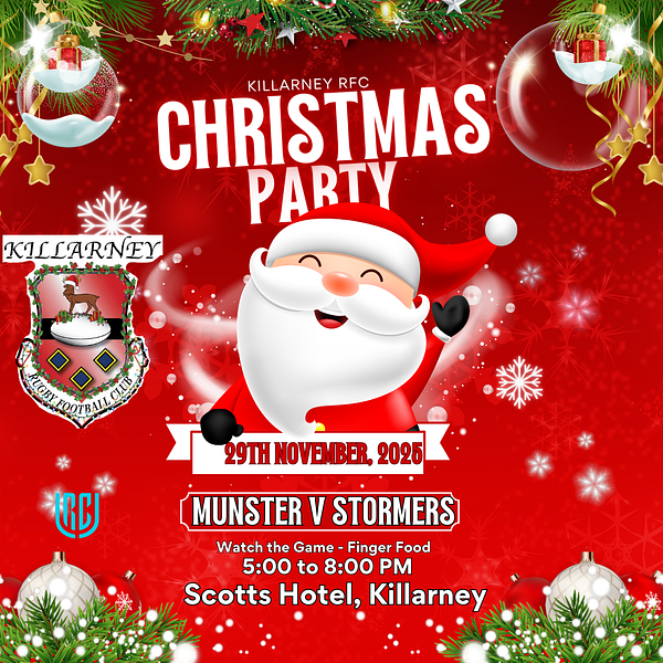 Get ready for an evening of festive cheer and thrilling rugby! Join us for the annual Killarney RFC Christmas Party at @ScottsHotel Killarney