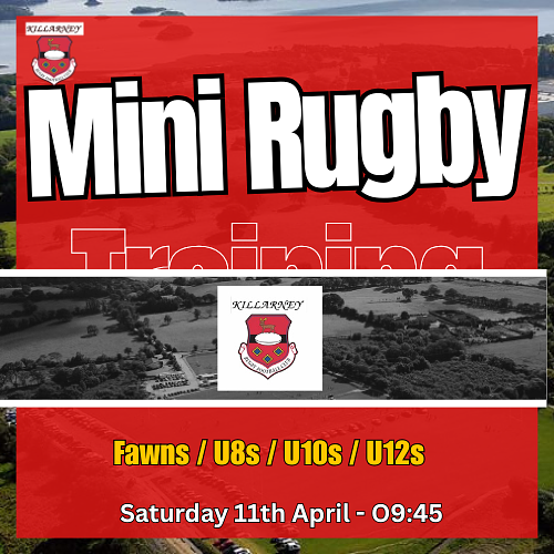 We also welcome our Mini Rugby players to Aghadoe for their regular training session at 9:45 am
